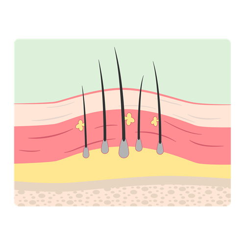 Bei Acne inversa kommt es zunächst meist zu einer Verstopfung des Haarfollikels – als solche bezeichnet man das Gewebe rund um die Haarwurzel, das das einzelne Haar in der Haut verankert. Aufgrund dieser Verstopfung kann sich der Follikel entzünden. Bricht er auf, können Bakterien tief ins Hautgewebe eindringen. Das Immunsystem reagiert darauf sehr stark und setzt entzündungsfördernde Botenstoffe frei, um diese körperfremden Keime zu bekämpfen. Die Entzündung breitet sich weiter aus und es entstehen Abszesse und Fisteln und im weiteren Verlauf Narbengewebe, das die betroffenen Hautareale dauerhaft verändert. In den meisten Fällen verläuft die Erkrankung schubweise, das bedeutet, Phasen mit starker Entzündung wechseln sich mit beschwerdearmen Zeiten ab.
