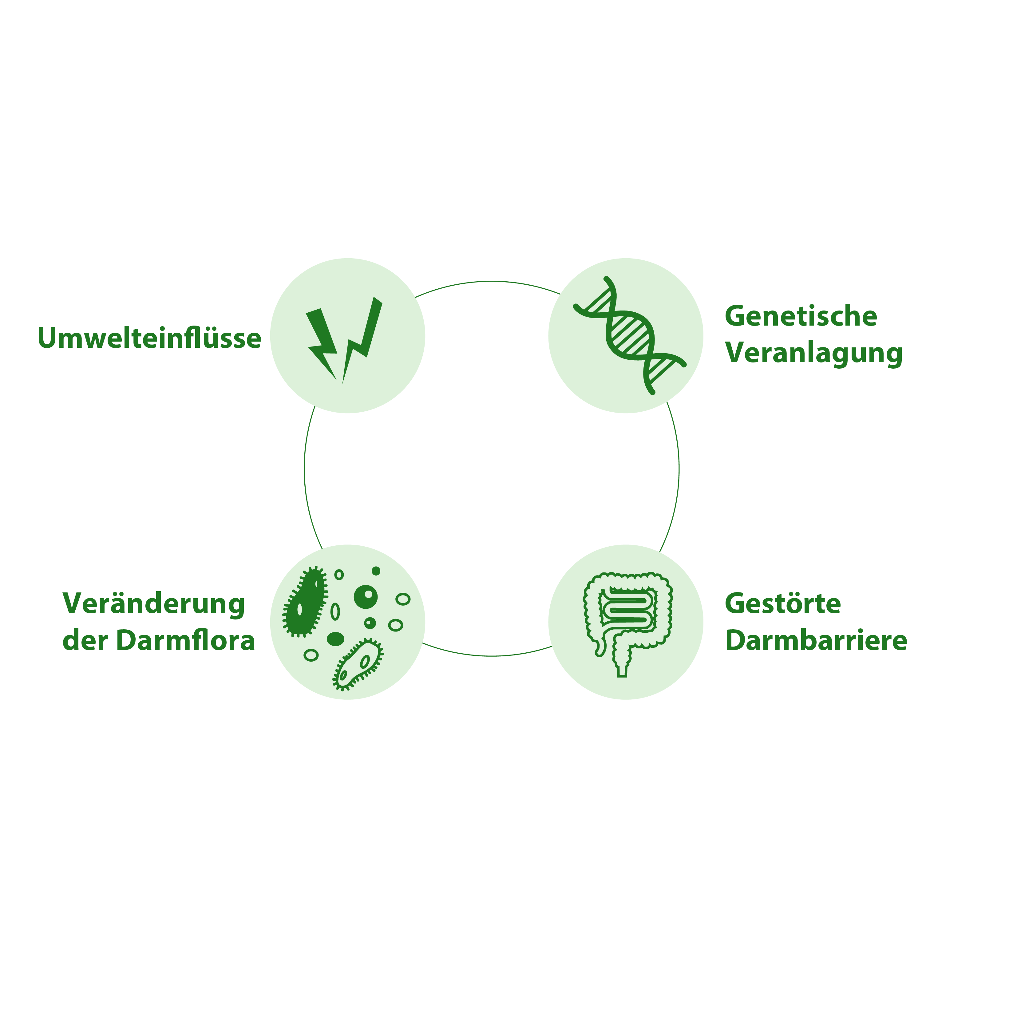 Die Ursachen von Colitis ulcerosa sind nicht vollständig geklärt. Fachleute gehen davon aus, dass die Autoimmunerkrankung des Darms durch ein Zusammenspiel verschiedener Faktoren entsteht. Dazu zählt eine genetische Veranlagung, denn Verwandte ersten Grades von Betroffenen haben ein deutlich erhöhtes Erkrankungsrisiko. Auch Fehlsteuerungen des Immunsystems spielen eine Rolle. Das körpereigene Abwehrsystem reagiert überempfindlich auf harmlose Reize wie Darmbakterien oder Nahrungsbestandteile und löst eine Entzündung aus. Zudem wird eine gestörte Darmflora (Mikrobiom) sowie eine geschwächte Darmbarriere mit erhöhter Durchlässigkeit diskutiert. Äußere Einflüsse wie Stress, Ernährung, Infektionen oder bestimmte Medikamente gelten ebenfalls als begünstigende Faktoren. Bemerkenswert: Rauchen sowie eine frühere Blinddarmentfernung (Appendektomie) scheinen das Erkrankungsrisiko paradoxerweise zu senken.