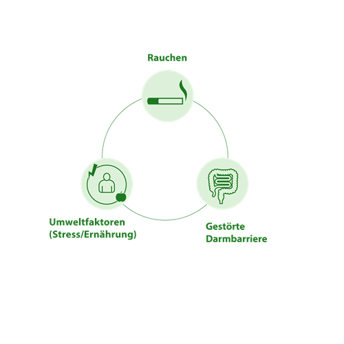 Darüber hinaus gibt es bekannte Risikofaktoren. Wer Verwandte ersten Grades mit Morbus Crohn hat, besitzt ein erhöhtes Erkrankungsrisiko. Auch Rauchen ist ein bedeutender Auslöser und kann nicht nur die Entstehung begünstigen, sondern auch den Krankheitsverlauf negativ beeinflussen.